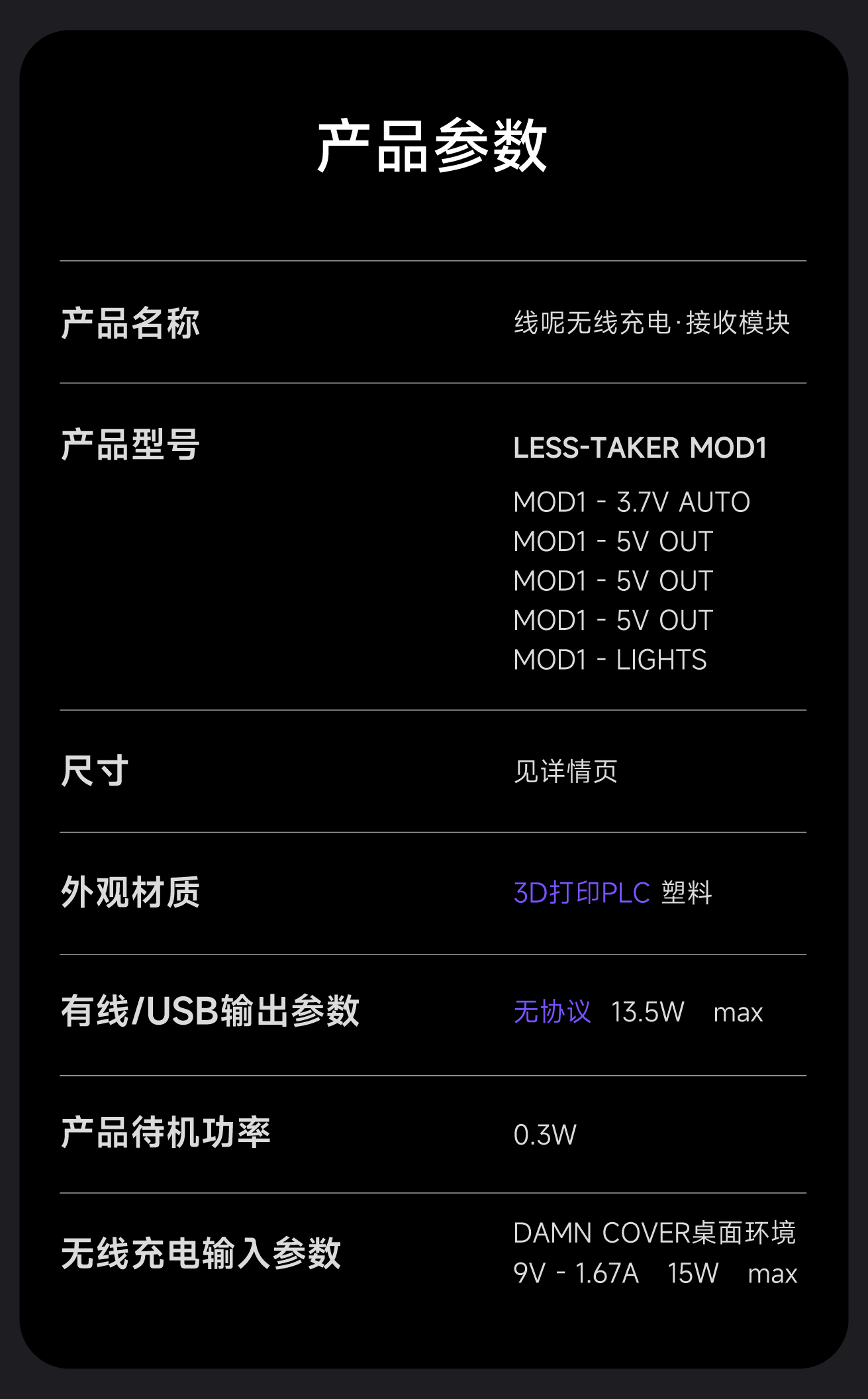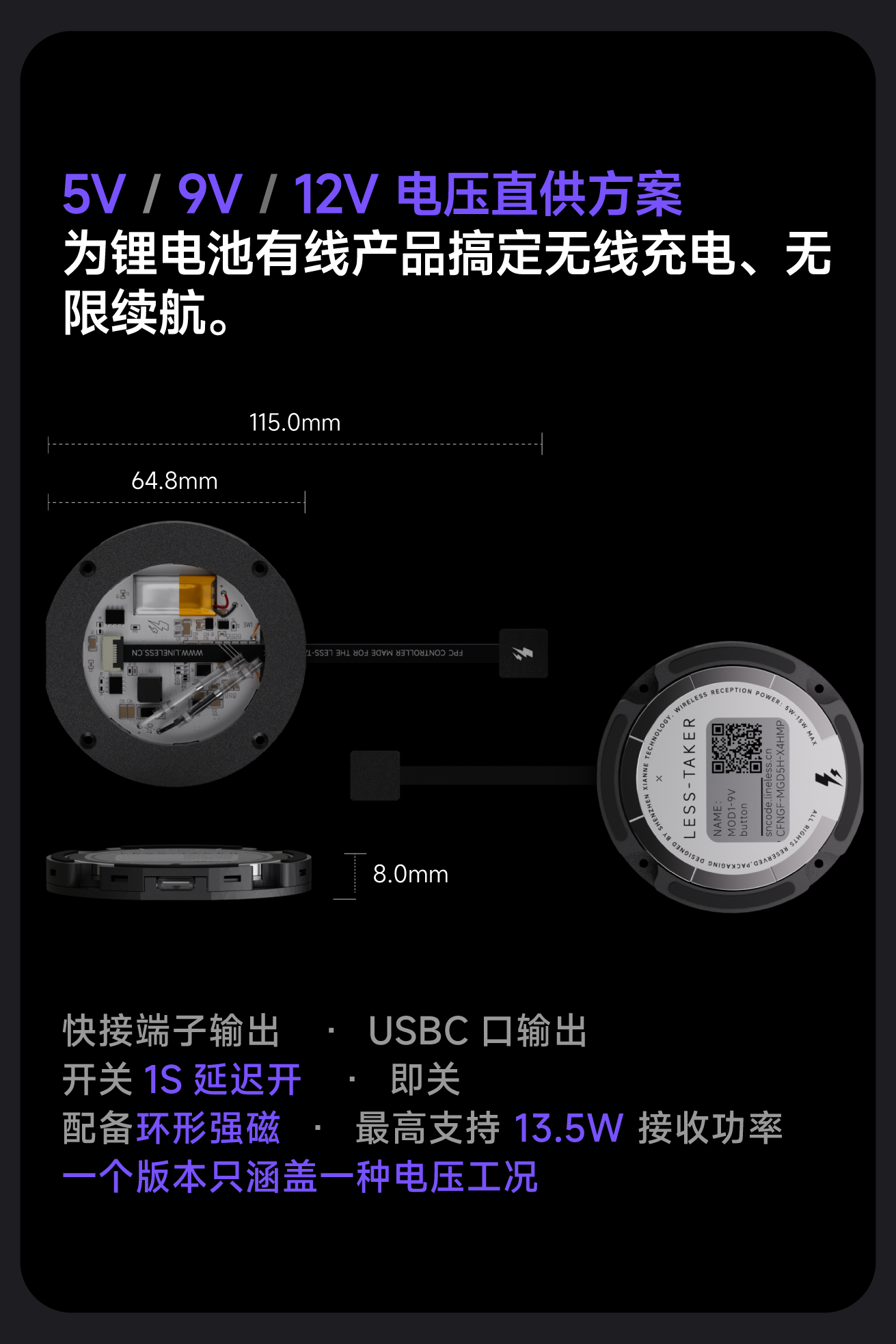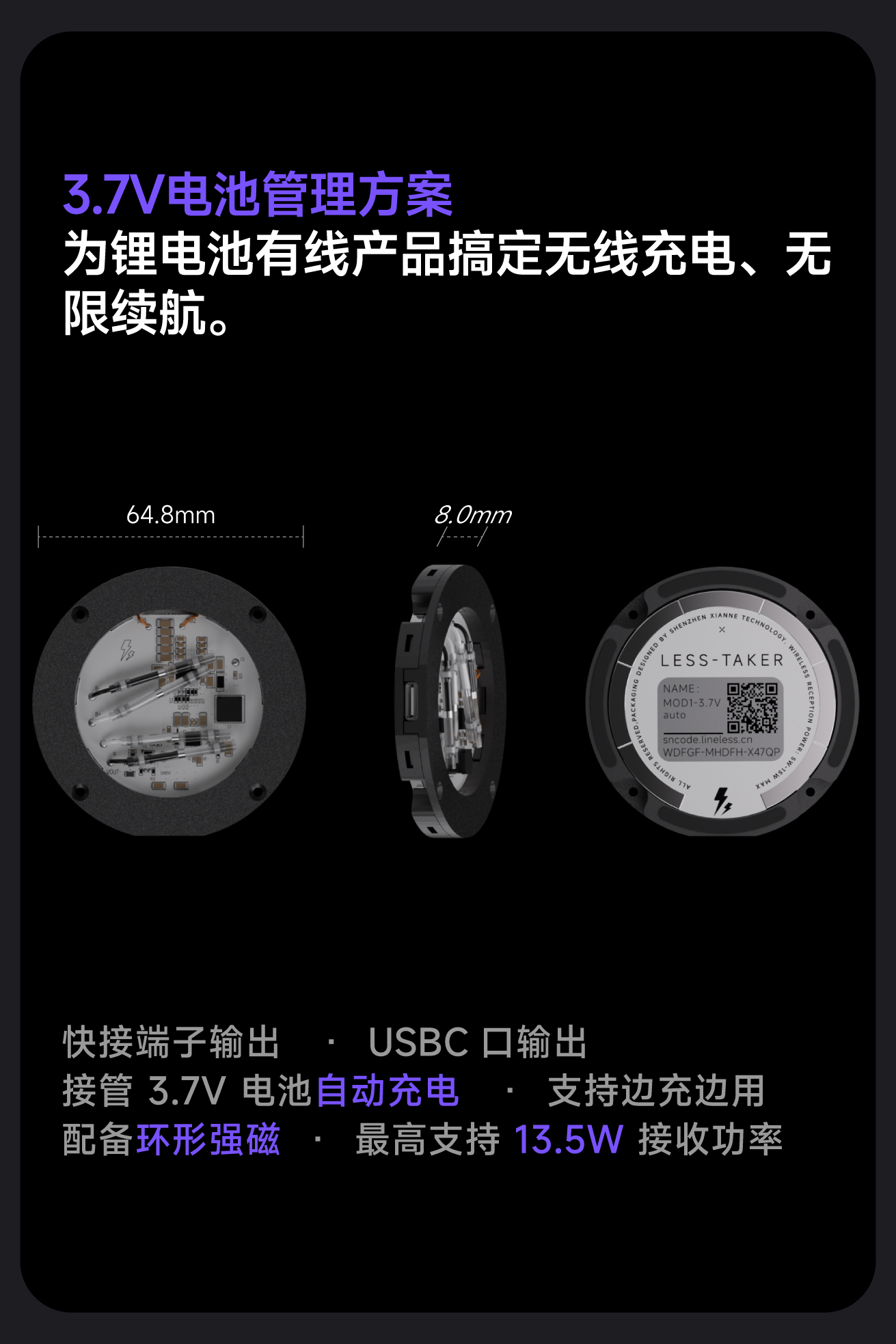 价格包含LESS-TAKER M1无线充电接收模块X1 型号价格以下单价格为准中国大陆非偏远地区包邮